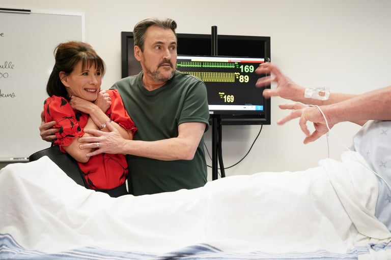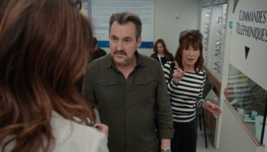 É : En fait, pour ces quatre-là, nos personnages, qui ne sont pas évidemment Sylvie ou Guy, n’ont pas un air d’aller incroyable. On est présents, on est là pour faire notre apparition. J’ai une autre scène qui va venir dans les deux autres épisodes où c’est très mignon. J’ai fait vraiment de petits aller-retours, mais c’est tellement le fun. Nous avons tous un petit peu cette responsabilité, parce que c’était évidemment événementiel. Quatre épisodes.