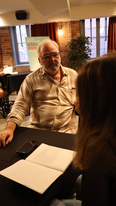 Roger, c’est quelqu’un qui a été bien utile dans la société pendant une partie de sa vie, mais sa vie a comme explosé. Il a perdu sa femme, ses enfants se sont éloignés. Il a aussi perdu sa job, parce qu’il n’est pas du monde (rires), mais c’est quelqu’un qui a beaucoup à donner : de l’expérience, des connaissances, de l’amour. Il n’a juste personne à qui le donner, alors lui, il décide qu’il vaut mieux mourir. Au départ, le roman s’appelait L’homme qui voulait mourir et ça, c’est Roger. Quand il rencontre cette petite fille-là, il trouve quelqu’un à qui transmettre ce qu’il sait. Il en dit plein d’affaires : « dans la vie, il ne faut pas que tu fasses ça, fais ci comme ça, fais ça ». Il lui lègue donc beaucoup de choses et quand il a fini de lui donner ce qu’il avait à donner, il meurt. C’est quand même incroyable !