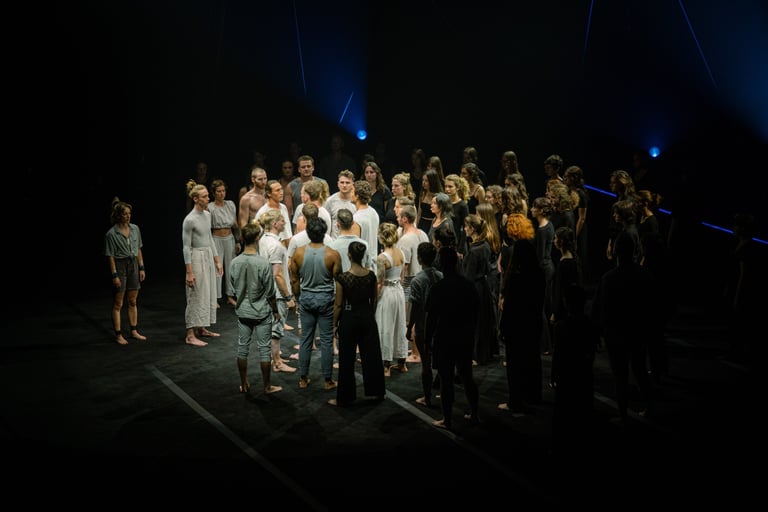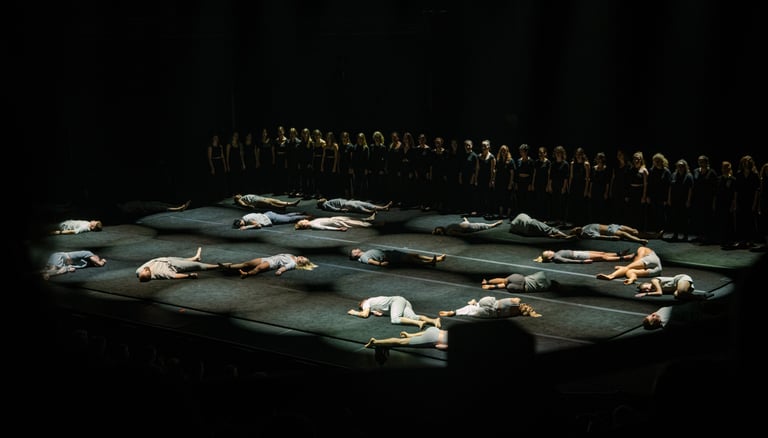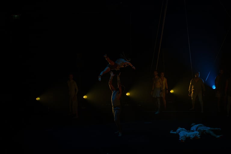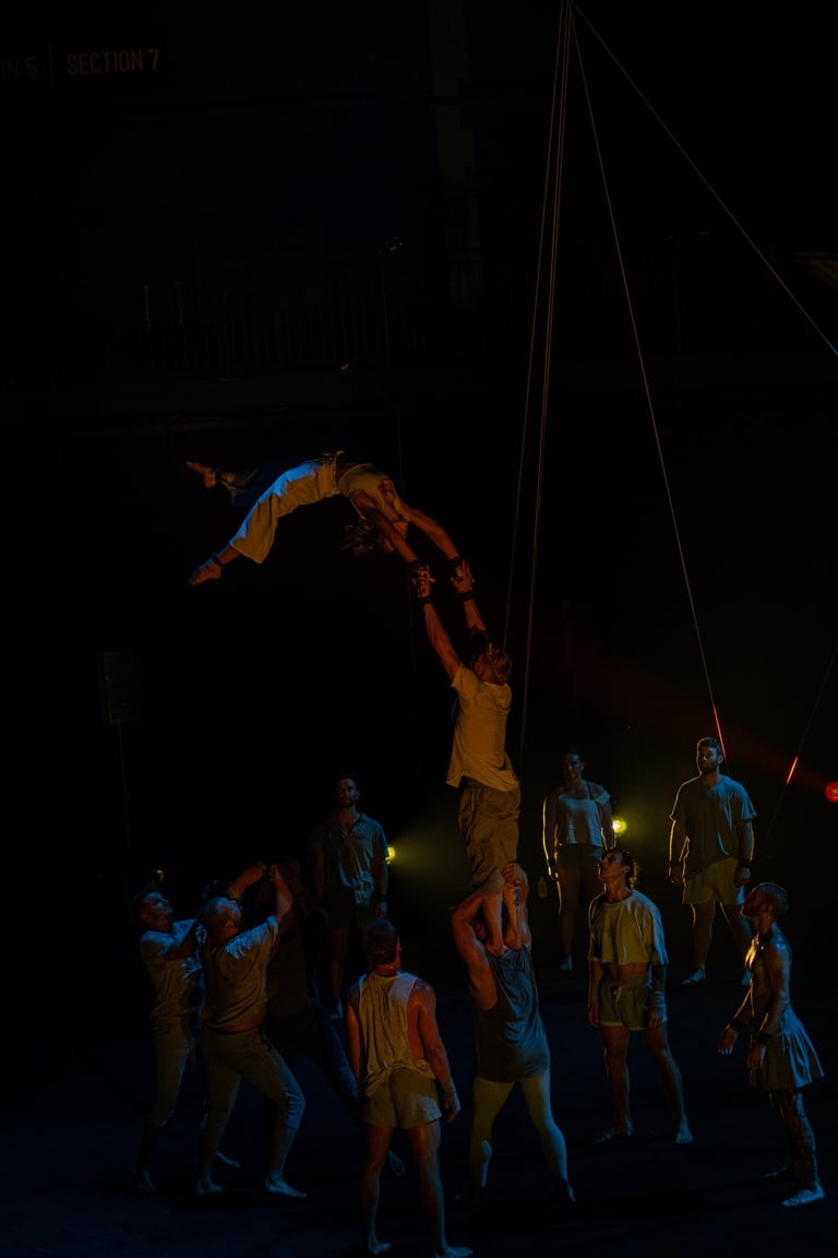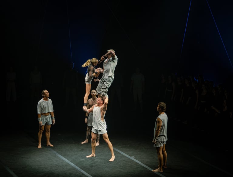 Réunissant sur scène 24 acrobates et 36 chanteuses du Cor de Noies de l’Orfeò Català, ce spectacle unique et captivant nous en a mis plein la vue au cours de cette première nord-américaine grandiose. Les éclairages sensibles de Geoff Cobham, la mise en scène inspirée de Darcy Grant et la partition entraînante d’Ekrem Eli Phoenix, habités par la formidable chorale Orféo Català Girls Choir de Barcelone menée par Buia Reixach, créent une synchronicité organique de mouvements et de sons humains.